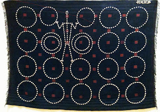 A space is set aside for an extensive collection of weavings that the Johnson Museum has received as a donation. Here I found a radical departure from the pictorialism of hair concepts in the rich geometry of a Naga Culture textile from 1930-1950. The Naga Culture is from Burma, now called Myanmar and the strong grid is reinforced cotton with cowrie shells.