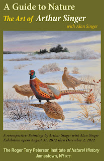 This fall I have been invited to be the curator of a show “A Guide to Nature” the Art of Arthur Singer with Alan Singer being held at The Roger Tory Peterson Institute. Included in this show (which runs until December, 2, 2012) are over 70 pieces of original art and some prints which document a long career in the service of art, education and conservation. Birds are the primary subjects here as is appropriate in a museum built by and for noted naturalists, and Roger Tory Peterson and my father were friends that depended on each other for advice and counsel. Painting portraits of birds didn’t start or end with Audubon, but continues to this day with a much wider audience, due in part to the artwork of artists like Peterson, and Arthur Singer. This is an art that most people can enjoy, they can see for themselves, and use as an aid in the field.