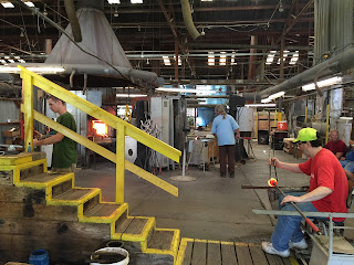 On the way back to Rochester, we took a detour through West Virginia, and made a stop at Milton, to watch the glass blowers at work in the Blenko plant. They have been in business making glass containers, and such since 1893. This was a good opportunity to slow down and watch the artisans at work – and their timing was just like choreography. The teams knew what they had to do, they were well practiced, and it was educational as well as entertaining.