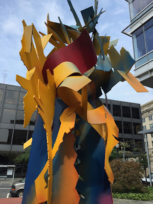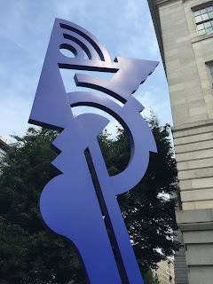 Across the street from The Smithsonian American Museum of Art I saw large scale sculpture by Albert Paley, but I had a difficult time finding a name plate or any description of the piece, until I went online to identify it. On another corner I found an equally large work by Roy Lichtenstein, from his series of art deco heads. Both sculptures have character and command attention.