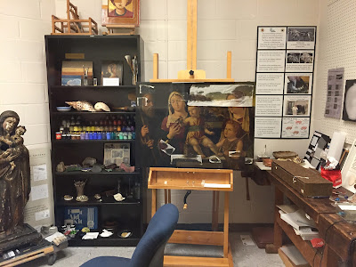 An interesting facet of The Walters Art Museum ( aside from the fact that entrance to the museum is free ) is that they have a window on a room where there is a conservator at work restoring old paintings and other artifacts. You get to see the tools of the trade and that is part of their educational mission.