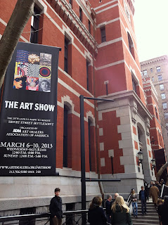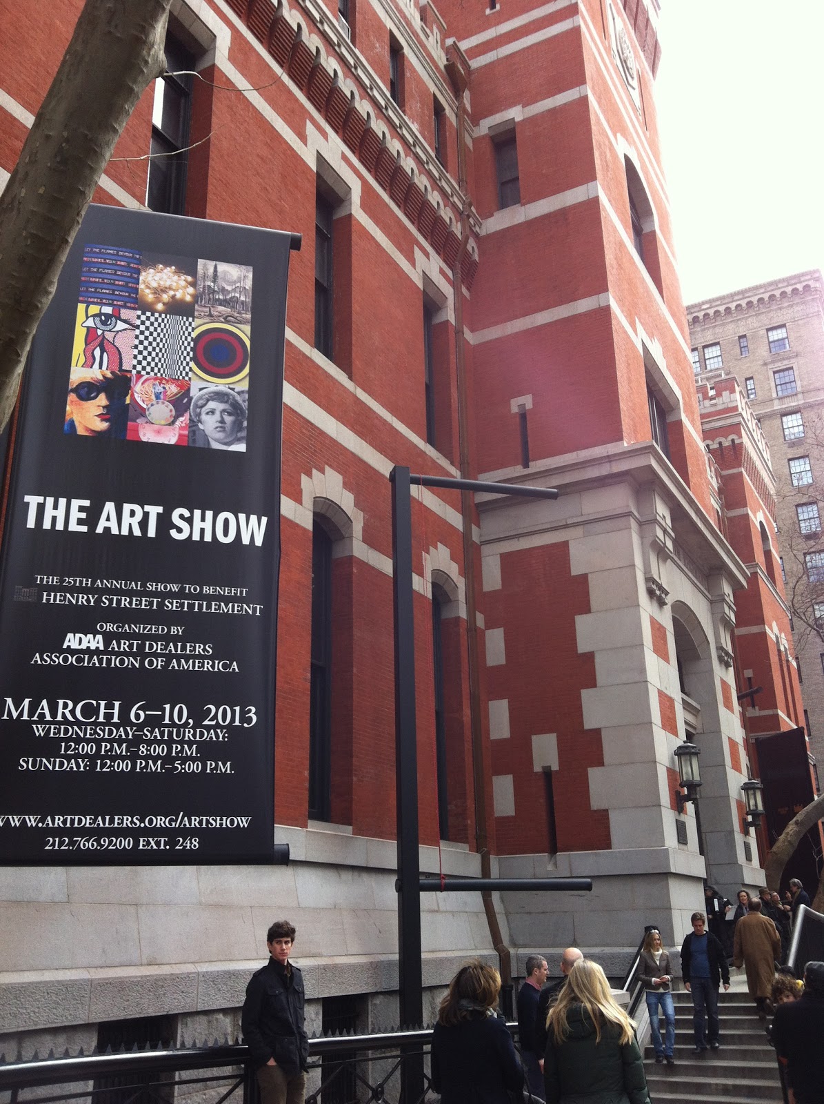 Want to find a more enjoyable venue than Piers 94 and 92? Tired of fighting the crowds? How about a show at a real armory? Sunday, around noon, upon entering I found the art of Jean Arp – reliefs that he is known for and pedestal works that remind one of Brancusi. Arp is not as stylized as Brancusi, so call this organic abstraction, and think of the impact of silhouettes and simple form ( you will see it again in the Arthur Dove watercolors scattered around the other exhibitions ).