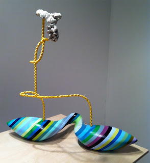 Across at the next booth, Tibor De Nagy had a selection of John Newman works in a solo show titled ” Everything is on the Table”. Here is an art that has paradox, and a sense of humor. These works, whether they are sculpture or drawings have a playful attitude towards form, they are often richly patterned and have elements in a kind of suspended collage.